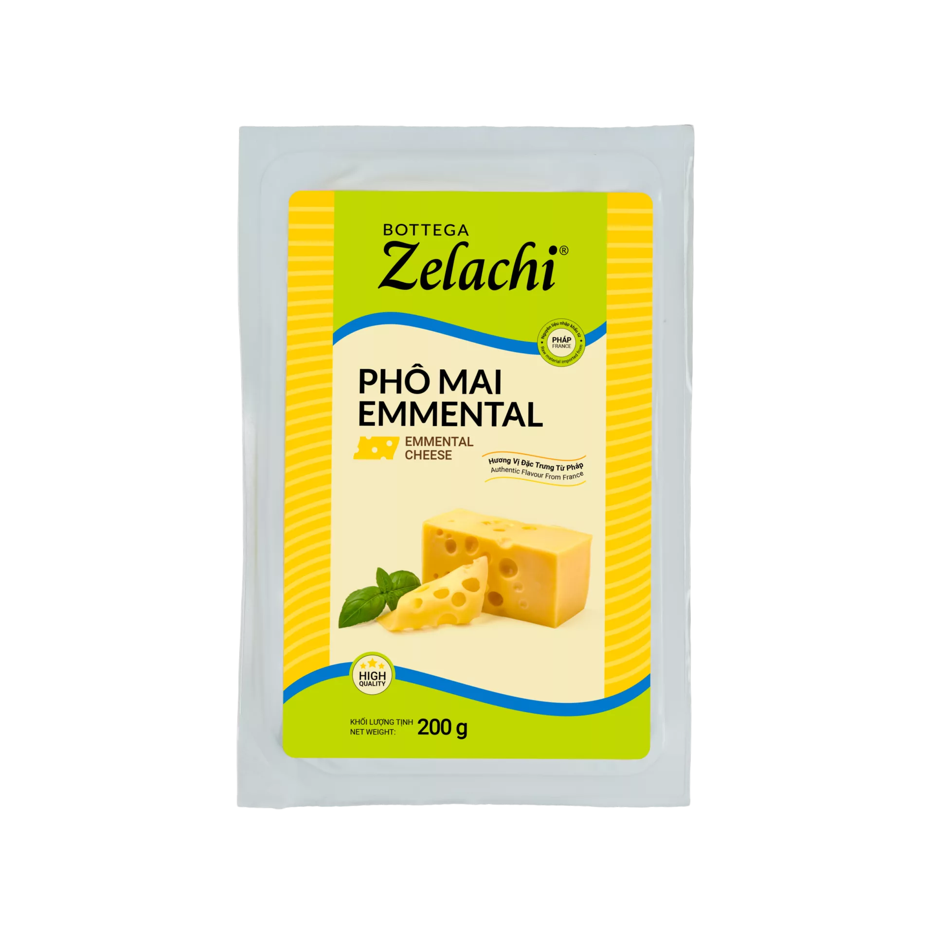 Emmental melts easily, making it perfect for baked dishes, pasta, pizza, and sauces. It’s also great for sandwiches, hamburgers, salads, or paired with wine for light snacks.