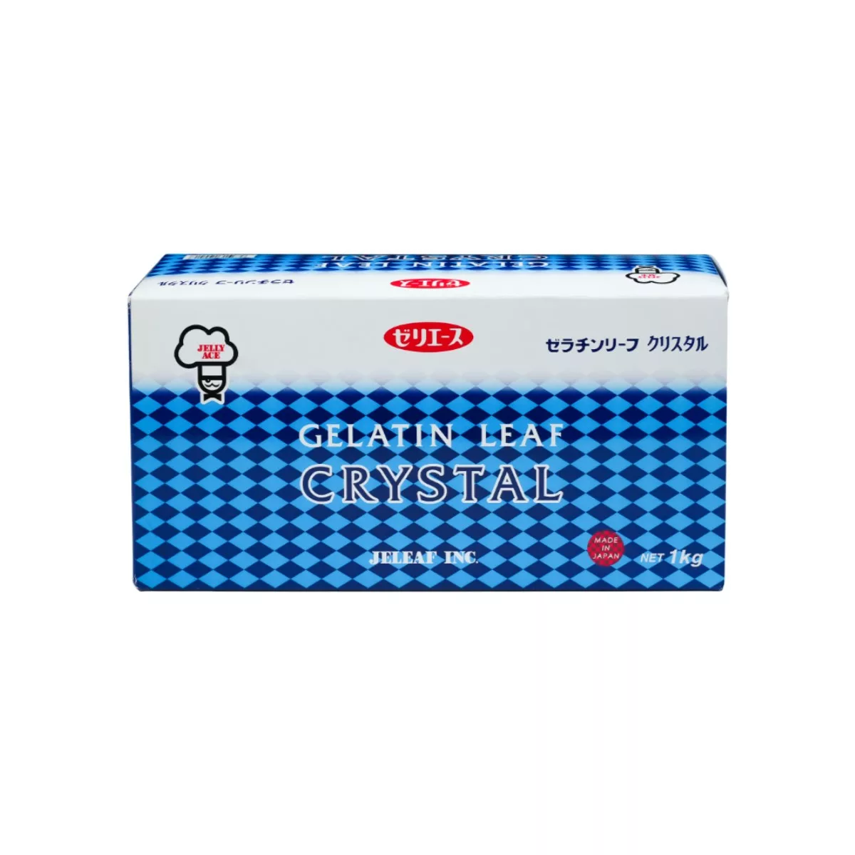 JeLeaf Gelatin Leaf is trusted by top chefs and pastry professionals, produced with over 90 years of expertise and advanced Japanese technology. The product is highly pure, transparent, quick-dissolving, bubble-free, preserves the original flavor, and meets Japanese safety standards. With a Bloom strength of 160–180, Crystal delivers a smooth, stable texture – ideal for mousse, panna cotta, layered jelly, and refined desserts.