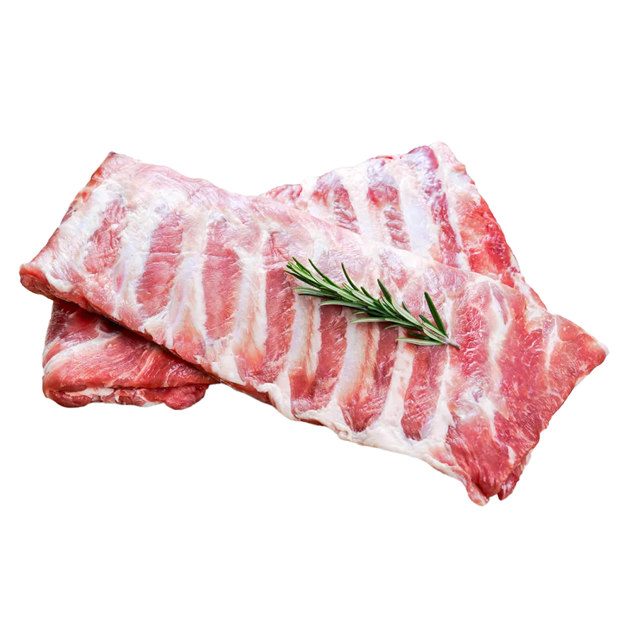 U.S Pork Ribs are a long cut that starts from the lower belly of the pig, consisting of 11–13 ribs. Pork ribs are usually flat and contain more bone than meat. However, they also have quite a bit of fat, which makes them tender. Since American pigs are fed with corn, U.S. pork ribs have thick, tender, juicy meat with a naturally sweet and fragrant flavor when cooked. They are strictly inspected and controlled by the Food Safety and Inspection Service of the United States Department of Agriculture (USDA).