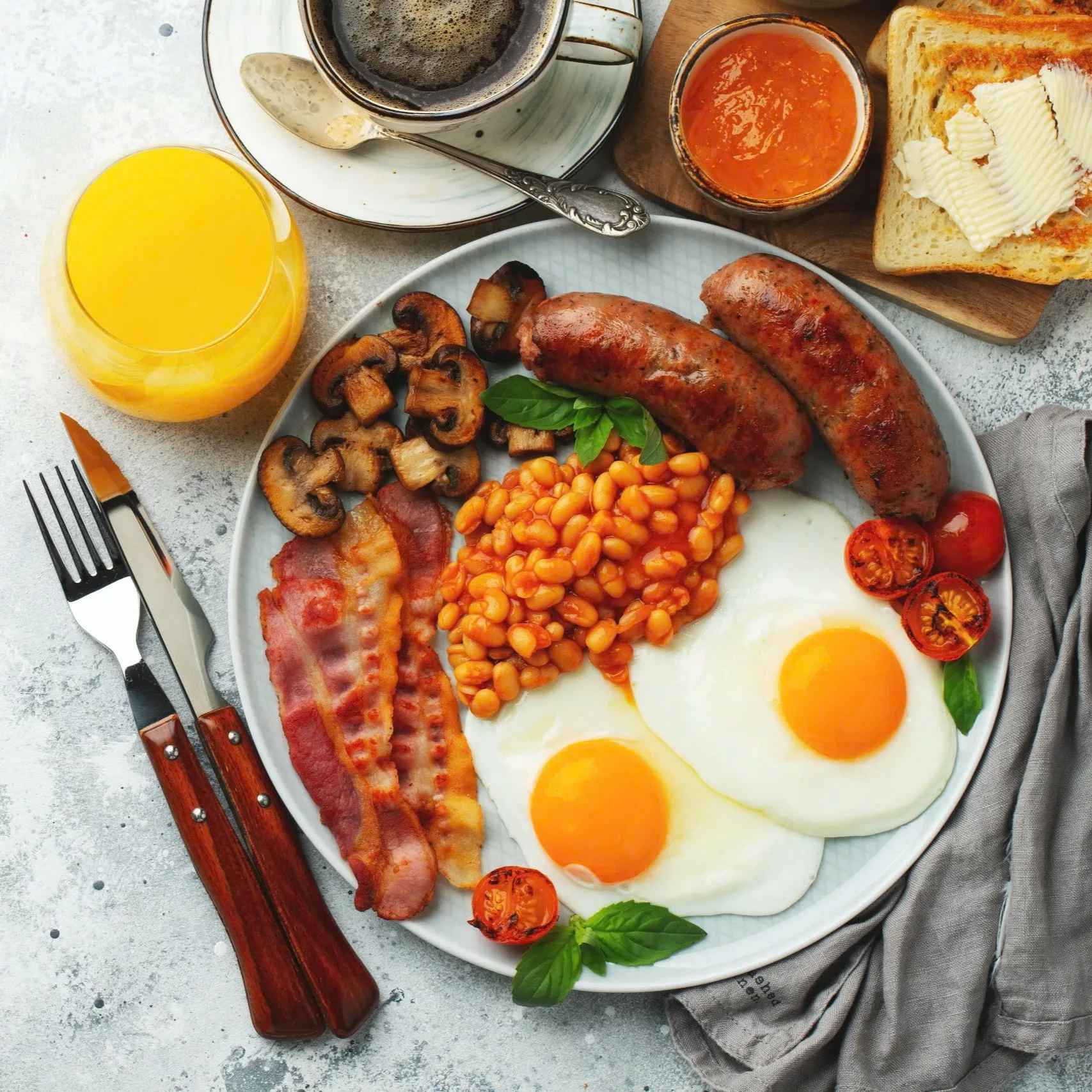 Bữa sáng tiêu chuẩn: Thành phần không thể thiếu trong set ăn sáng kiểu Anh tại các nhà hàng và khách sạn.